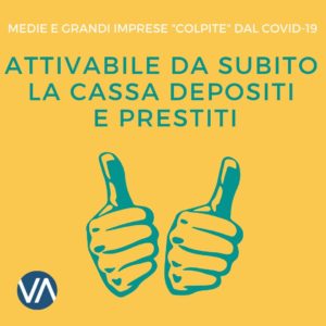 Le medie e grandi imprese “colpite” dal Covid-19 potranno fruire immediatamente di finanziamenti per sostenere il fabbisogno attuale di liquidità, andando così in supporto al capitale circolare e agli investimenti previsti dal piano di sviluppo di ciascuna azienda. A renderlo noto è la stessa Cassa depositi e prestiti, prevedendo lo stanziamento complessivo di 2 miliardi di euro per un importo compreso tra 5 e 50 milioni di euro e riscattabile fino a 18 mesi. Non si esclude che ciò potrebbe avvenire anche grazie al contributo di altri istituti finanziari.