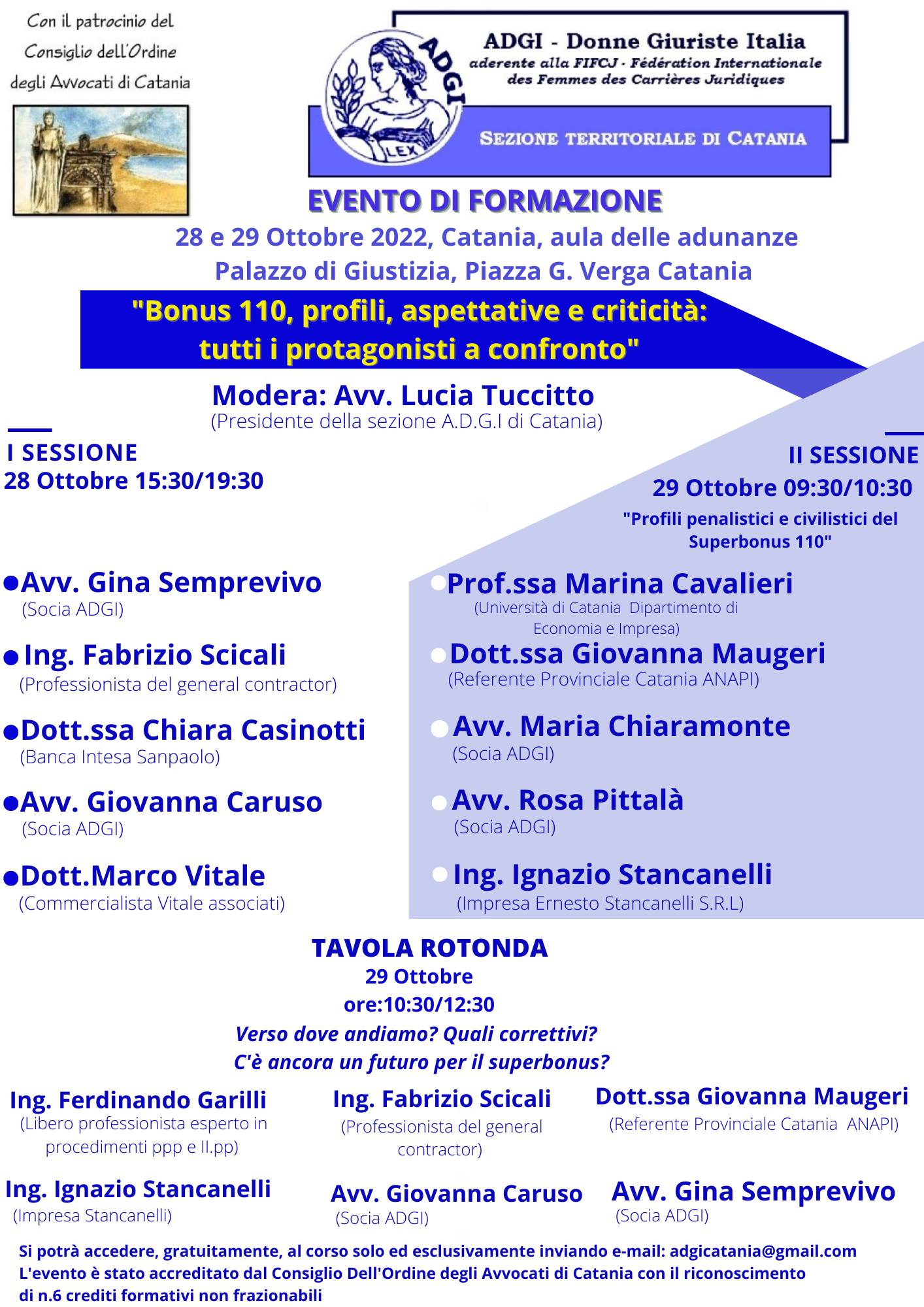 Vitale Associati vi aspetta venerdì 28 ottobre, dalle 15:30 alle 19:30, al convegno “Bonus 110, profili, aspettative e criticità: tutti i protagonisti a confronto”, organizzato da ADGI (Associazione donne giuriste Italia) e accreditato dal Consiglio dell’Ordine degli Avvocati di Catania.